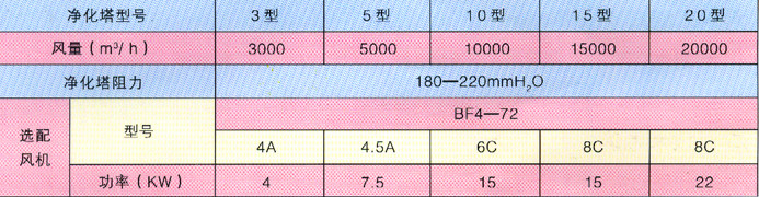 WXY型無泵酸霧凈化塔、玻璃鋼風機選配表